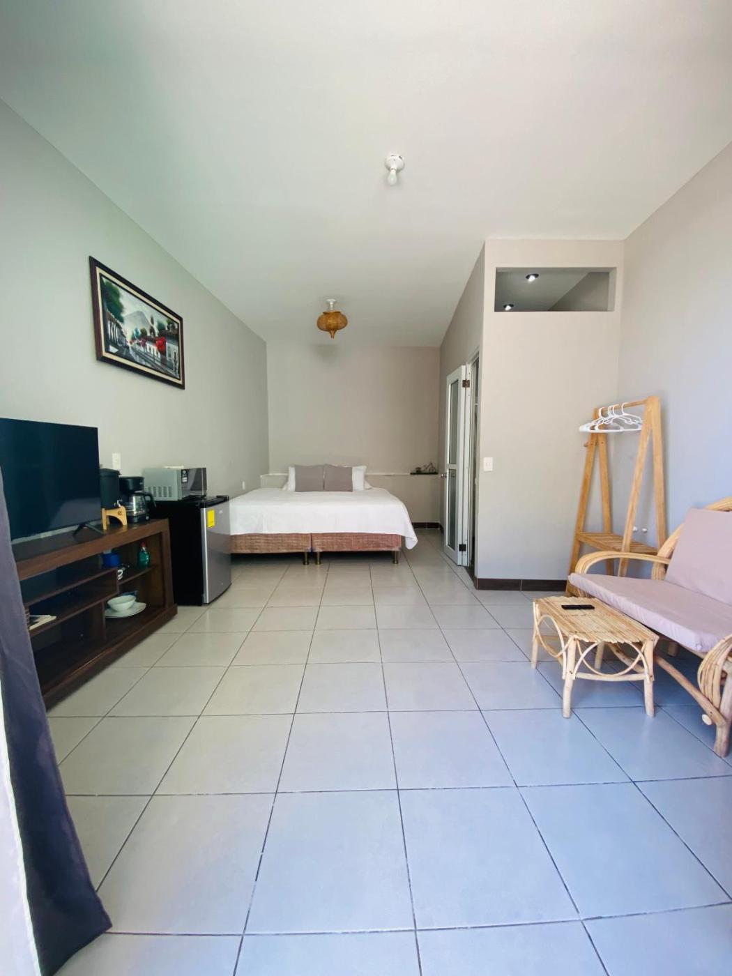 King Studio. This studio is comprised of a flat-screen TV with streaming services, a private bathroom as well as a patio. The unit has 1 bed.